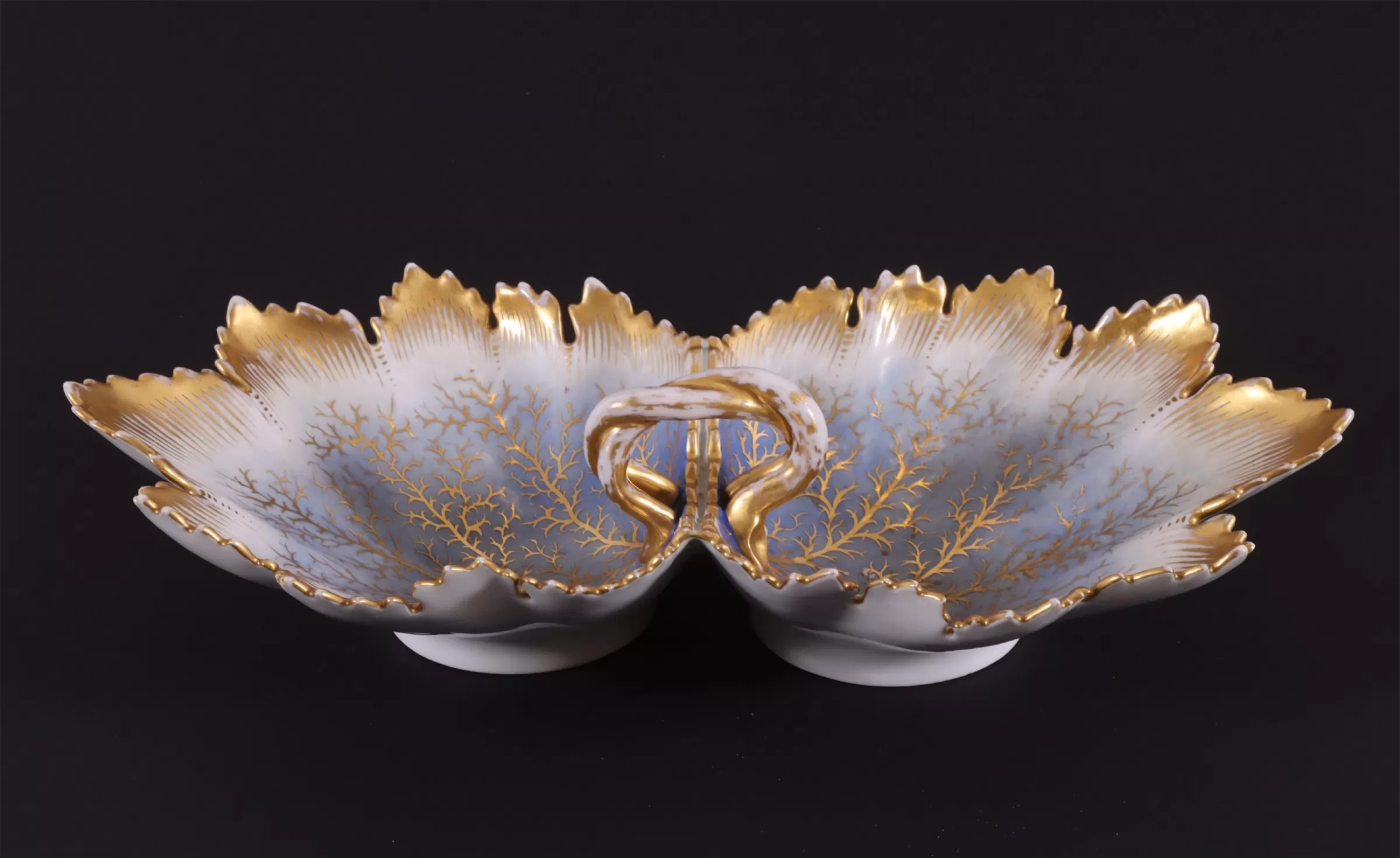 - forma dwóch dużych liści połączonych w centralnej części uchwytem - splecioną gałązką