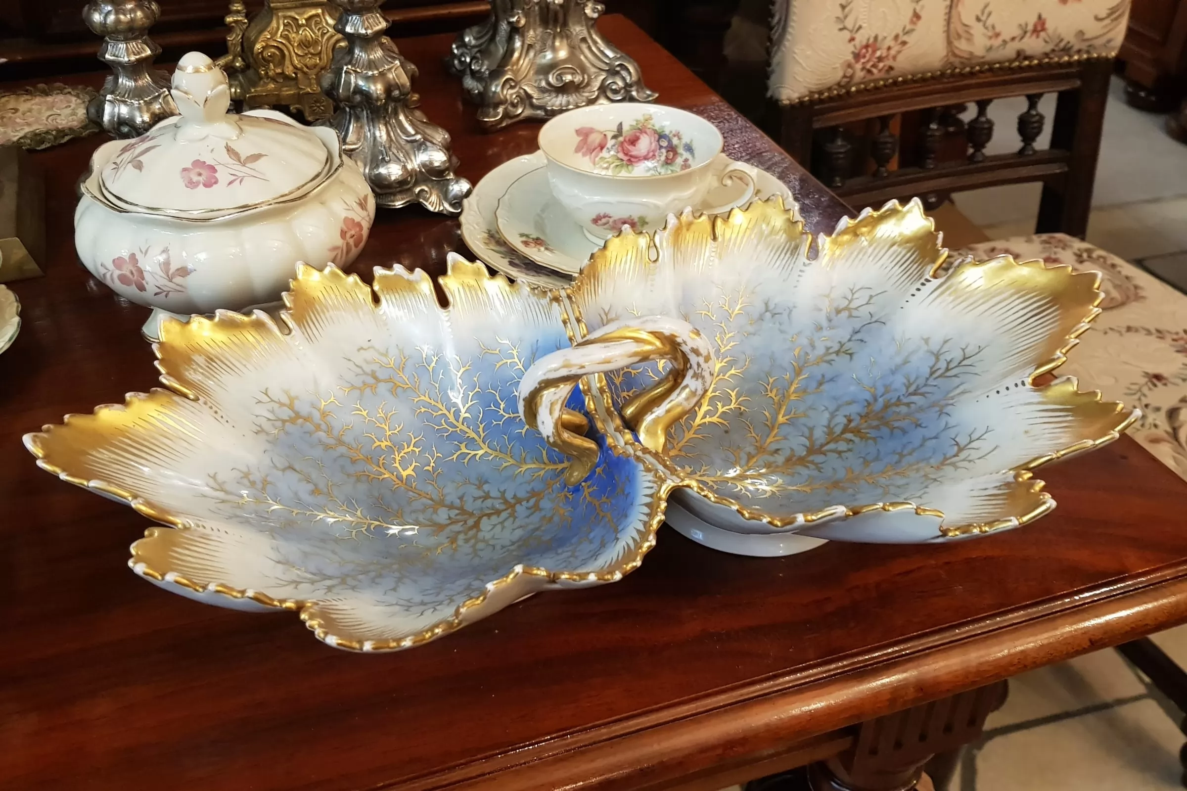 - zachowany w bardzo dobrym- stanie, minus za delikatne przetarcia złoceń (największe na uchwycie), sama porcelana bez pęknięć czy ubytków