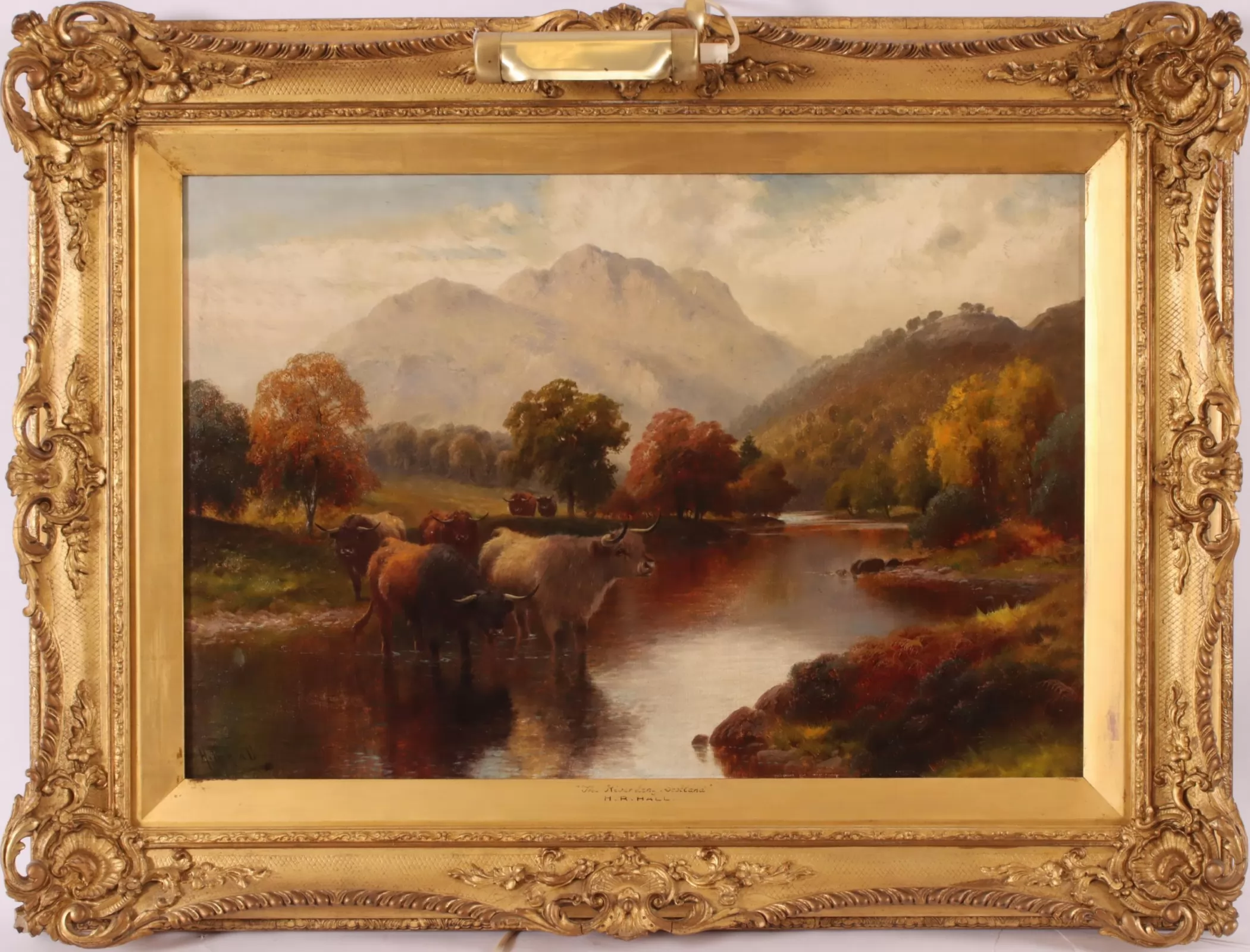 - autor: Henry Robinson Hall (1859–1927) był wiktoriańskim i edwardiańskim pejzażystą, malującym oleje i akwarele, znanym ze swojego bydła z Highland