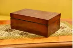 - fornirowana jest różnymi gatunkami drewna, na wieku i froncie widoczna delikatna intarsja