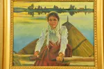 KOBIETA NA ŁODZI OLEJ NA PÓTNIE