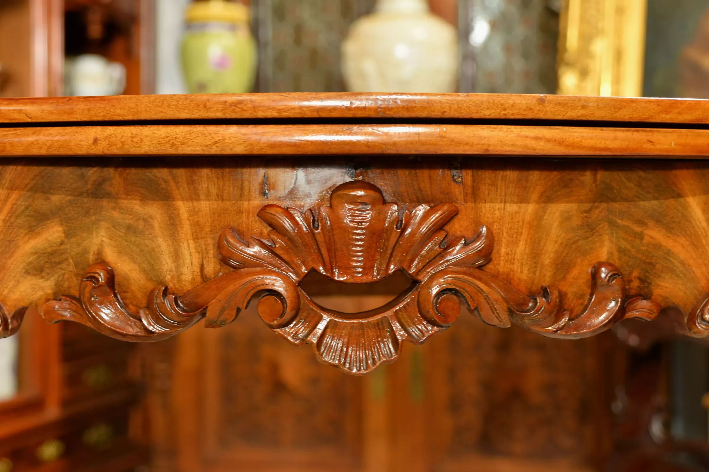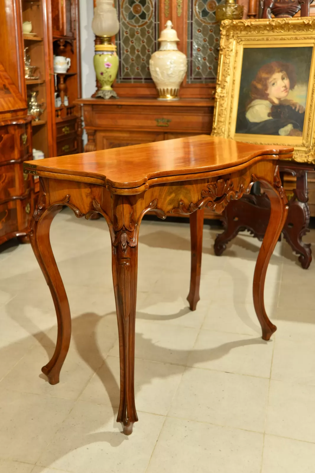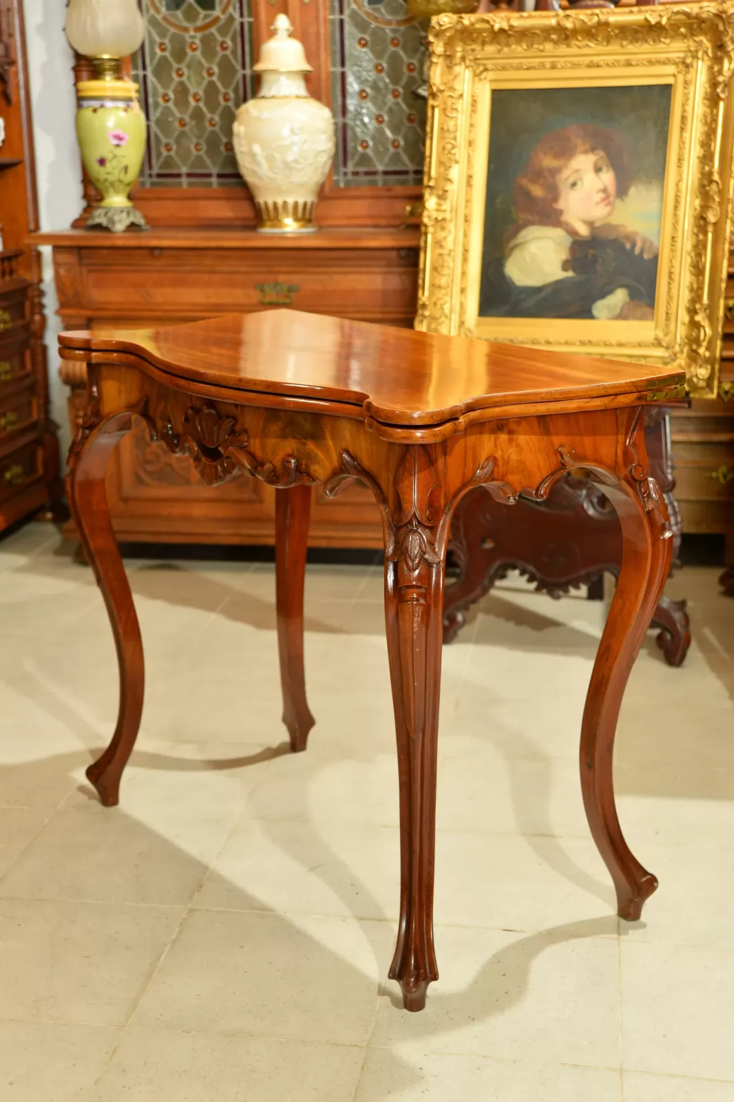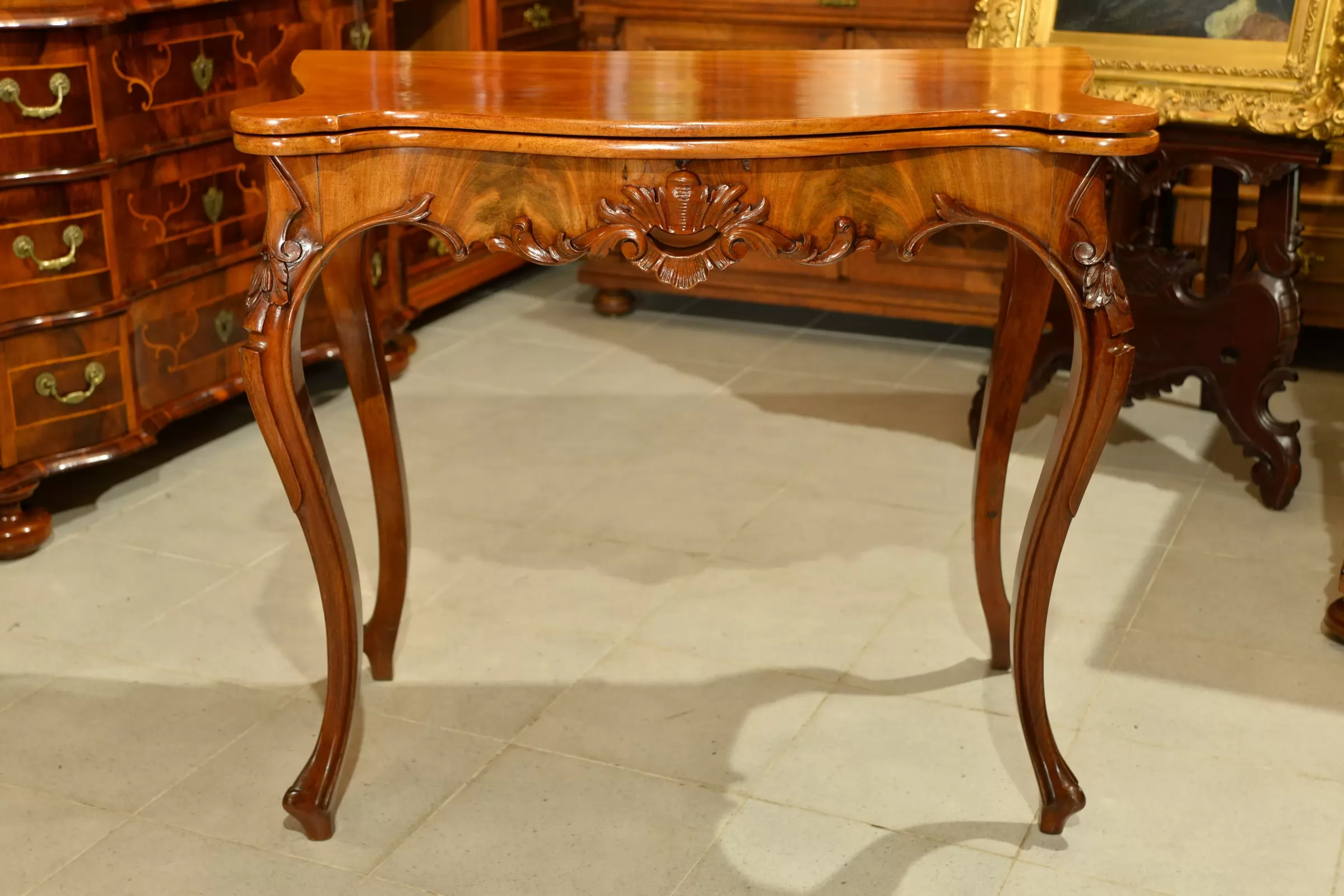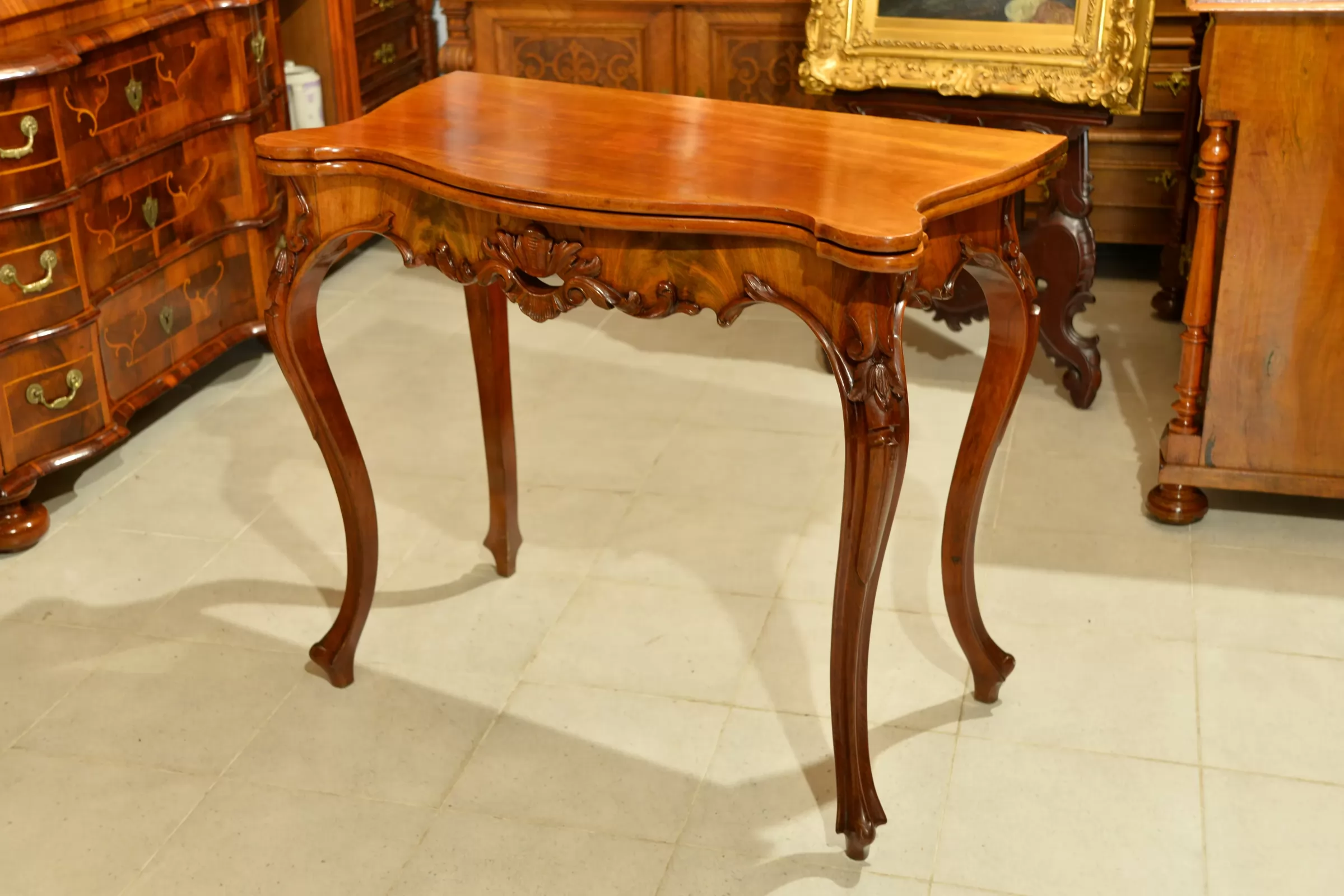- klasyczna ludwikowska forma na czterech giętych nogach, z pięknymi zdobieniami na rantach i charakterystycznie profilowanym blatem