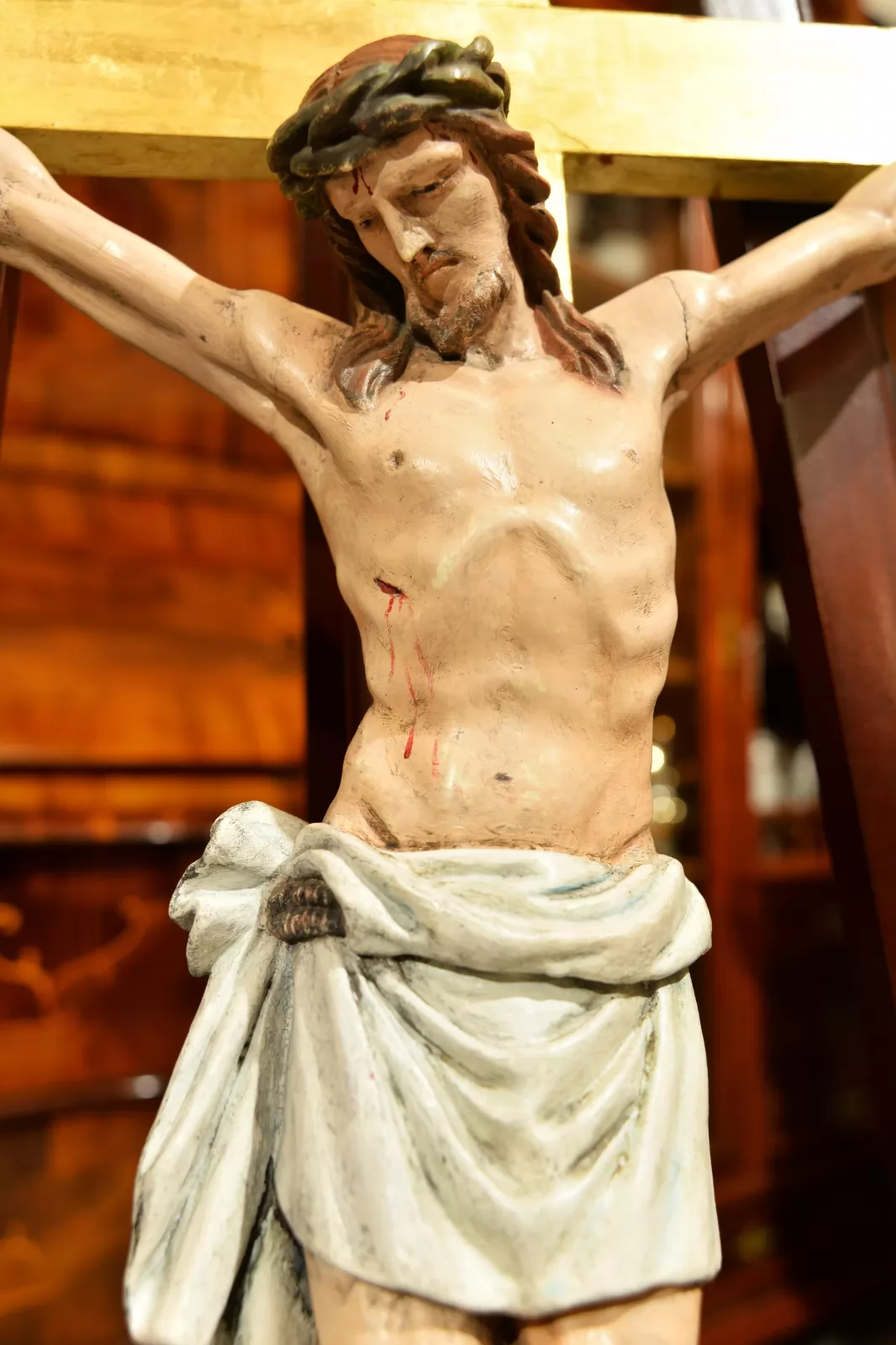 - na krzyżu umieszczona postać Jezusa - również wykonana z drewna