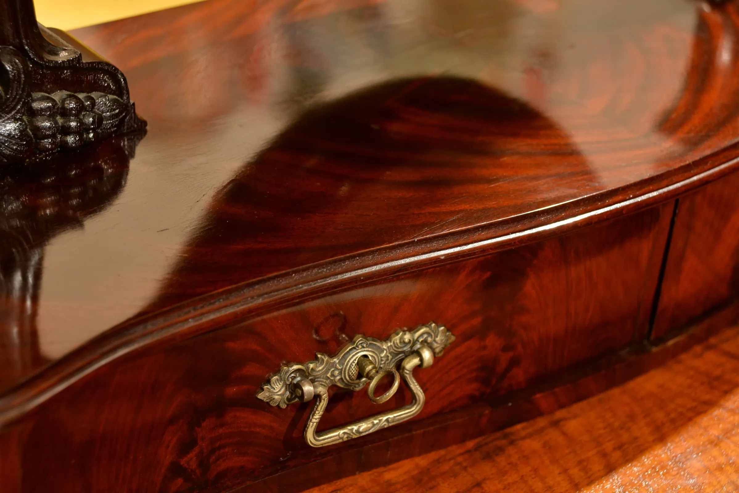 - forma tego mebla jest niezwykle piękna, a zarazem typowa dla mebli ludwikowskich - solidna konstrukcja, ozdobne pilastry, wzorzysty fornir, bogate rzeźbienia