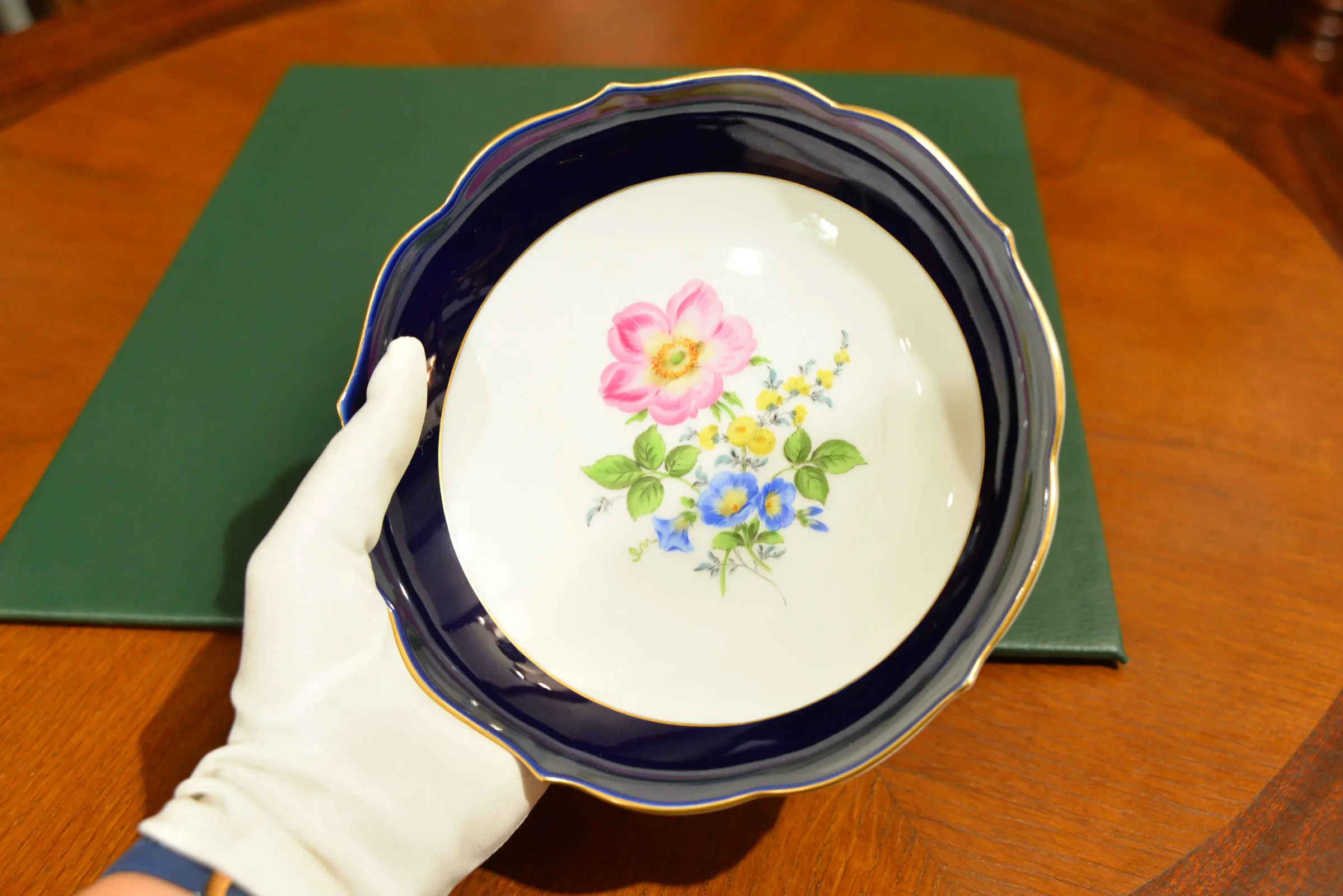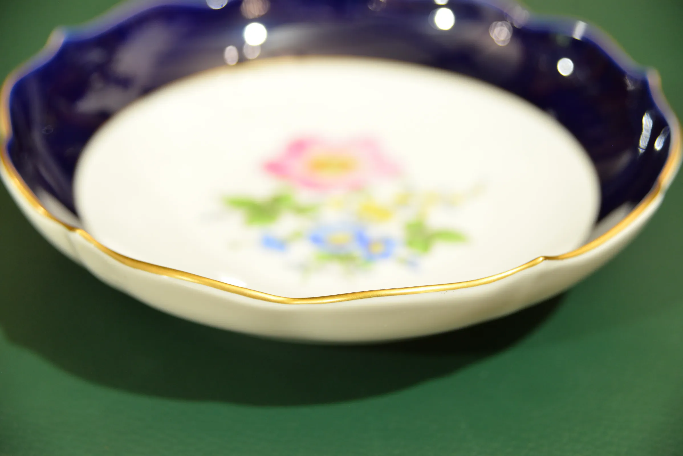 - zdobiona złoceniami, kobaltem, a w centralnej części motyw kwiatowy