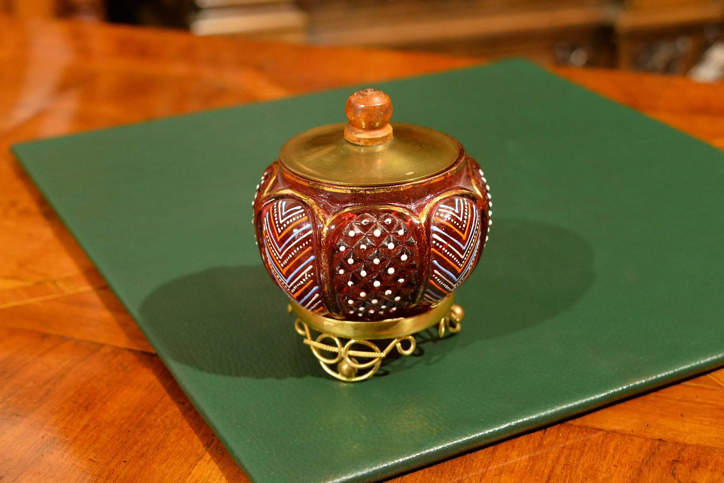 NIEDUŻA BOMBONIERA SZKLANA RĘCZNIE MALOWANA ok. 1920r