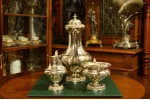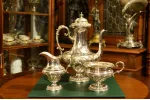 - srebrzony zestaw do kawy i herbaty, w skład którego wchodzi dzbanek, mlecznik oraz cukiernica
