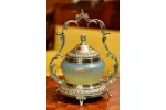 POSREBRZANA CUKIERNICA BOMBONIERA Z PIĘKNYM SZKŁEM pocz.XXw