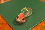 - wewnątrz znajduje się "medalion" wyłożony materiałem, który stanowi zaplecek na zawieszony zegarek, wisiorek itp.