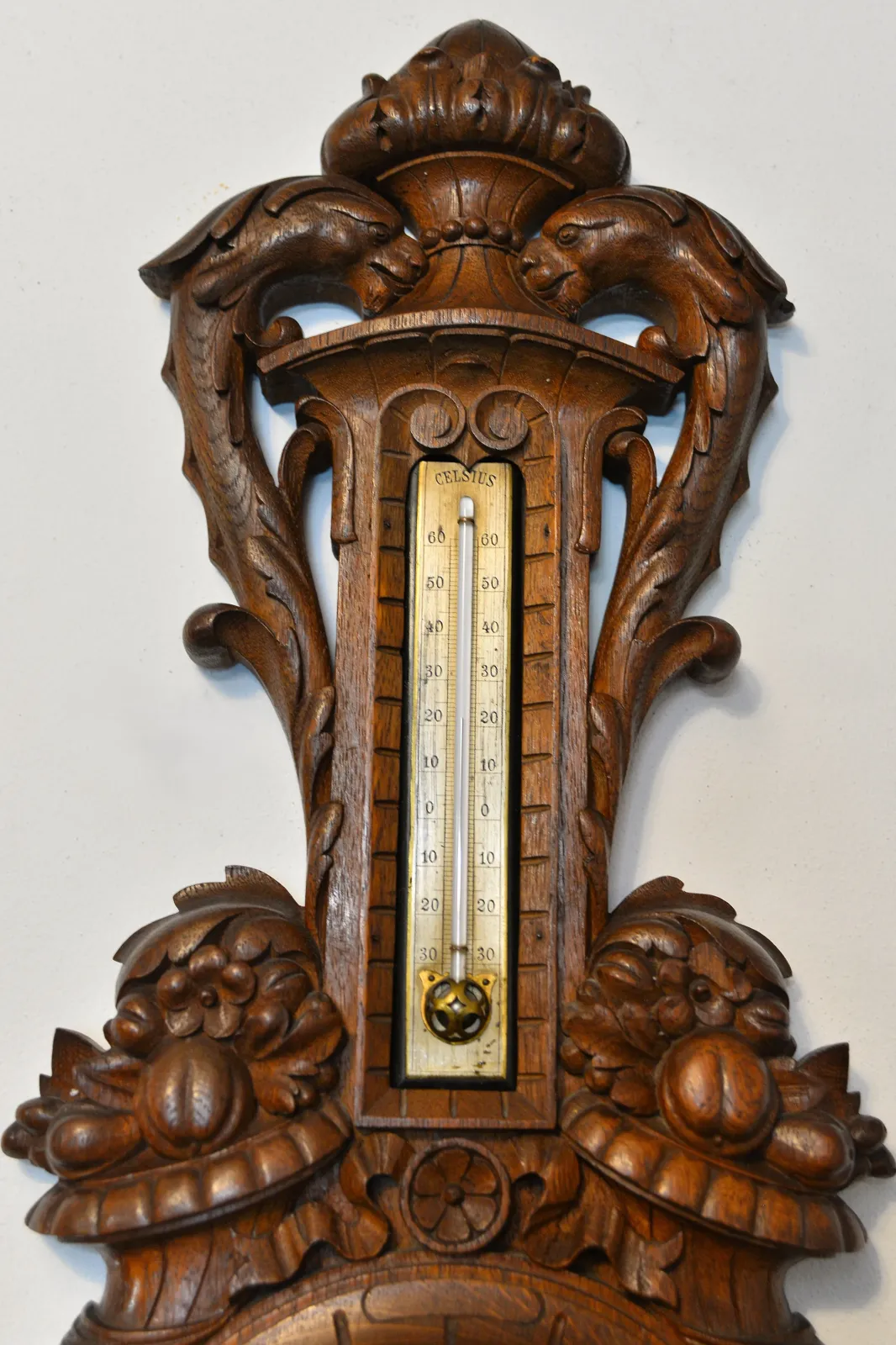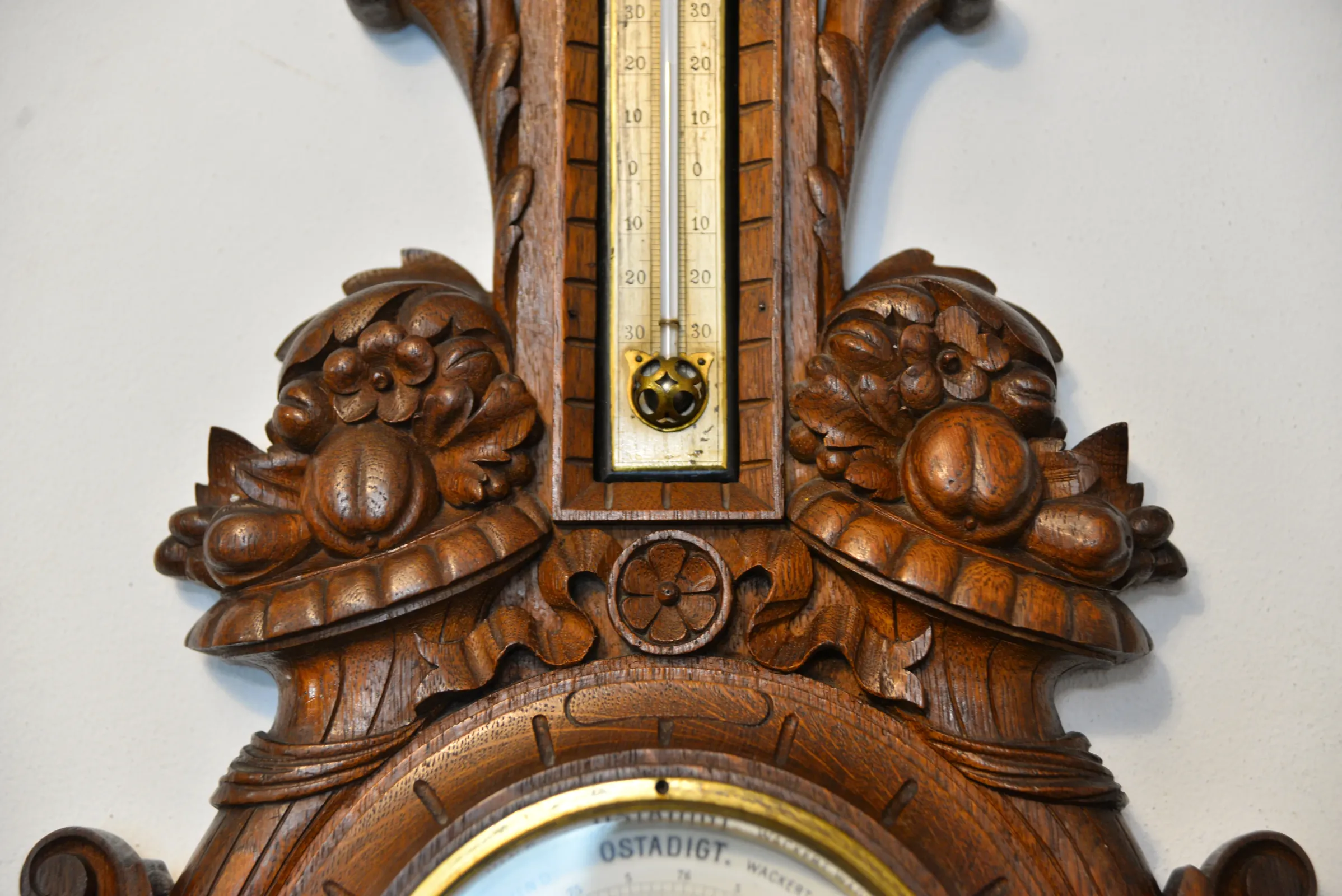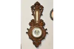 RZEŹBIONY BAROMETR + TERMOMETR - DUŻY - ok. 1920r
