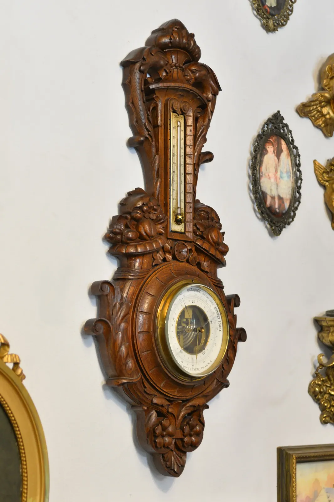 - barometr posiada przepiękną formę zdobioną wyjątkowo bogatą rzeźbą z ornamentami roślinnymi
