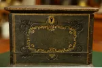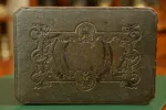 - drewniane "pudełeczko" zewnątrz obite skórą z tłoczonymi i złoconymi wzorami