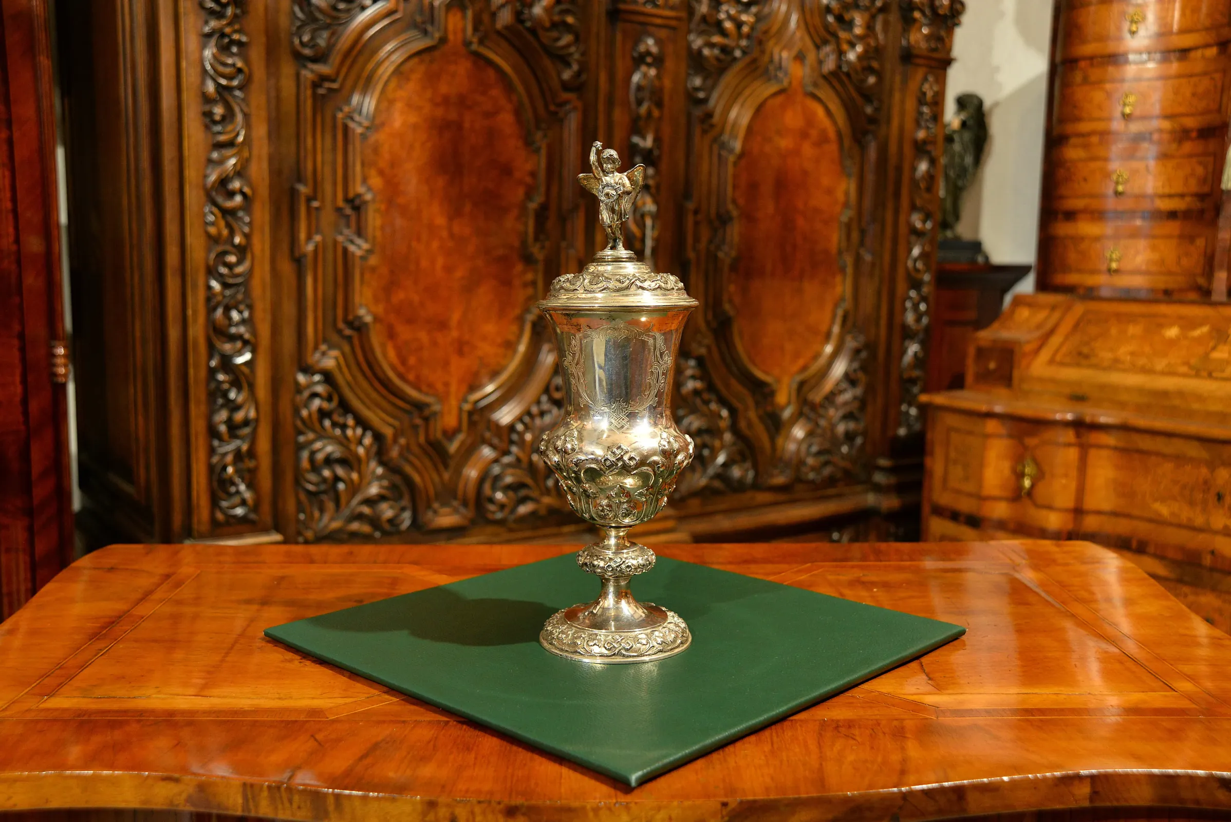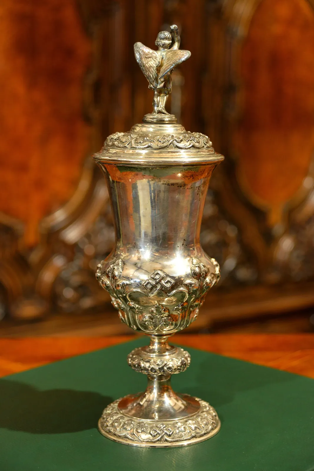 - puchar zwieńczony postacią uskrzydlonego putta