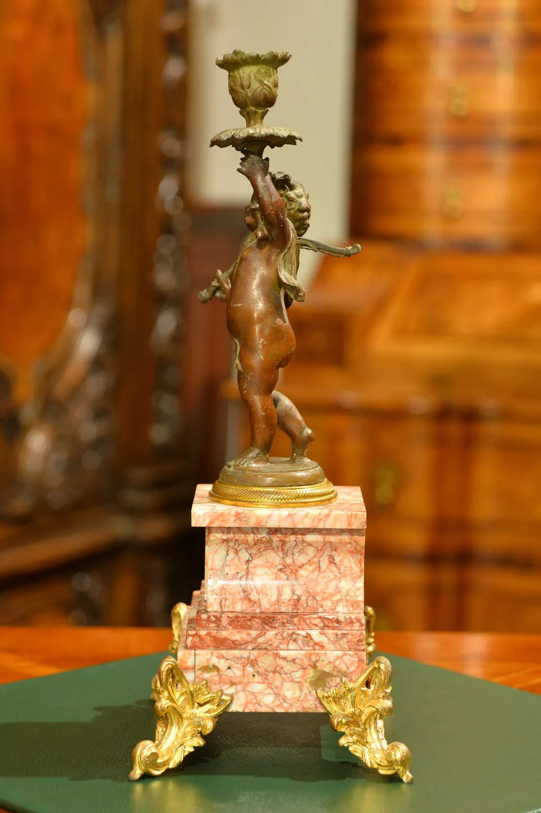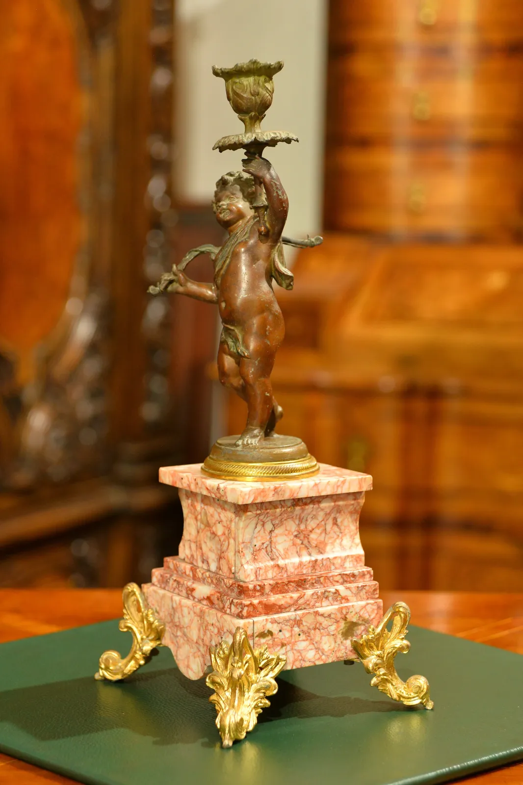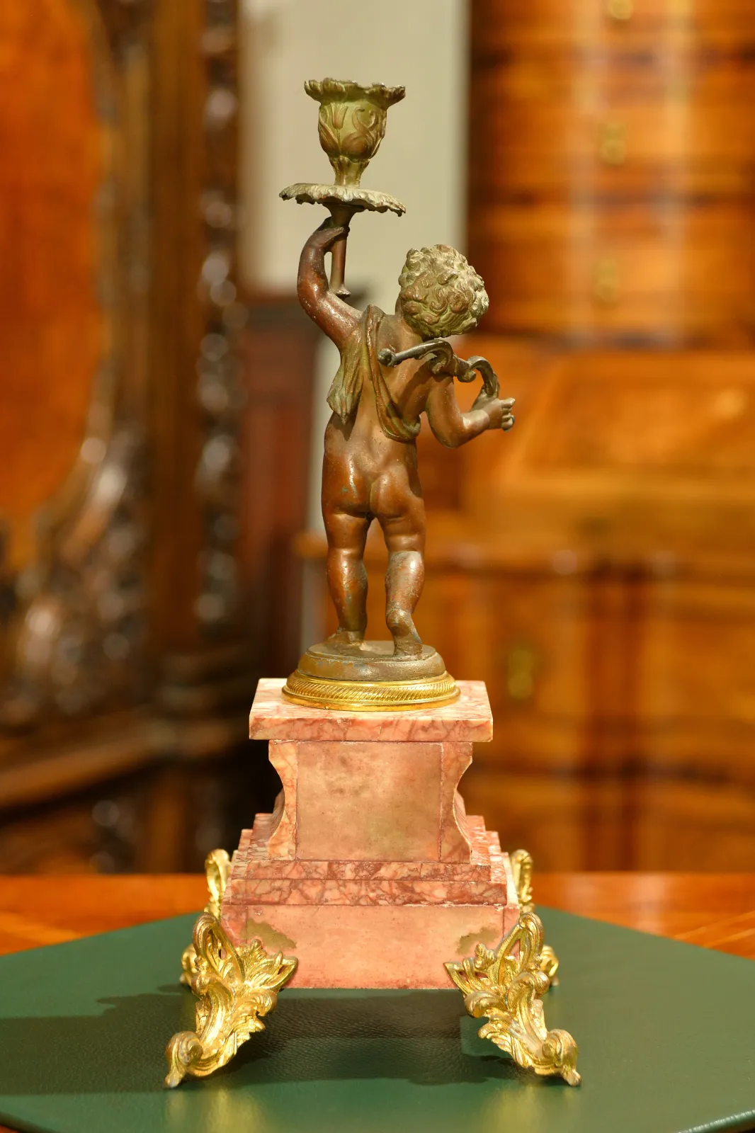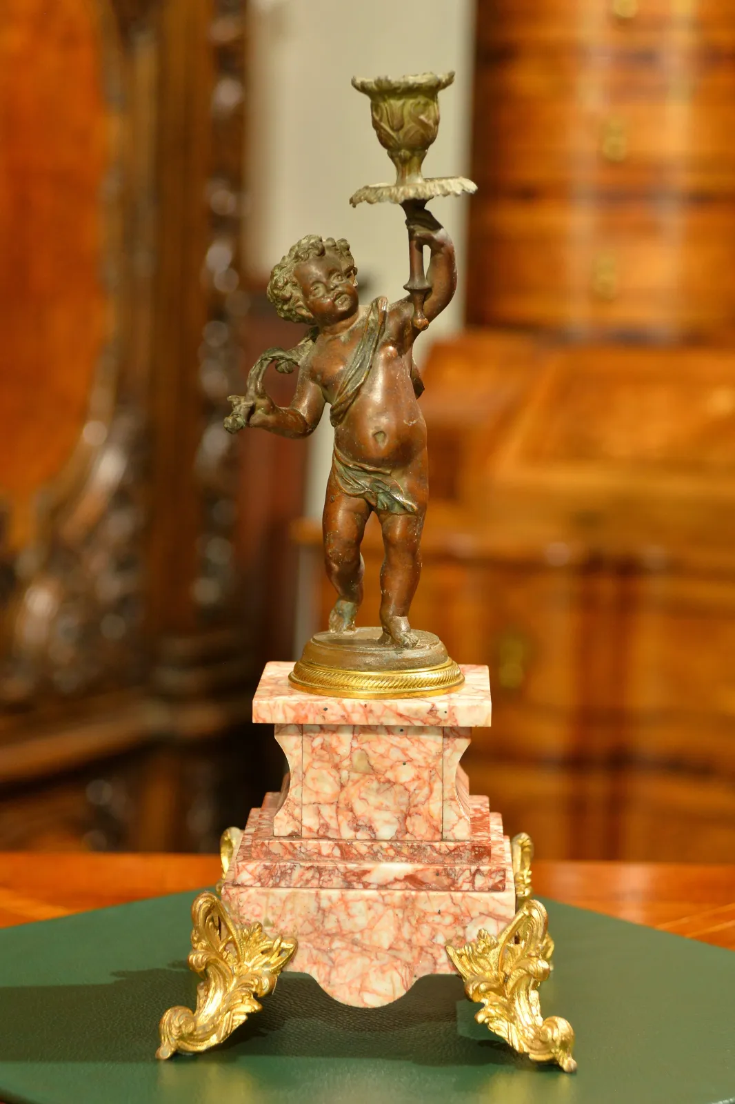 ŚWIECZNIK PUTTO NA MARMUROWEJ PODSTAWIE ok. 1870r