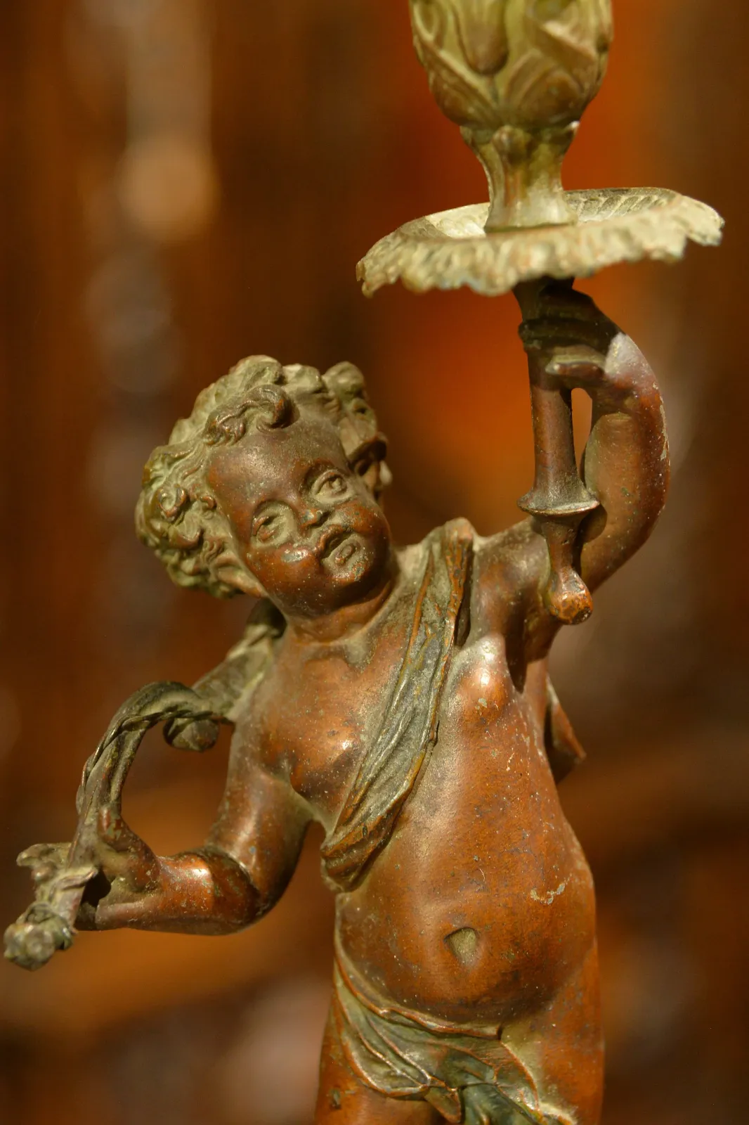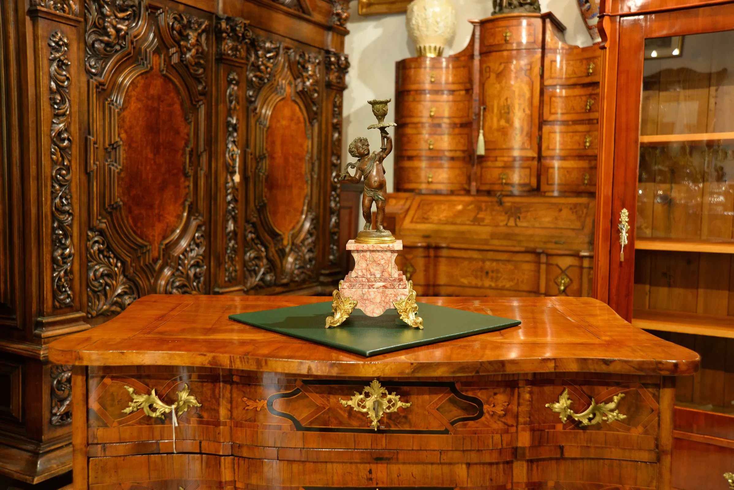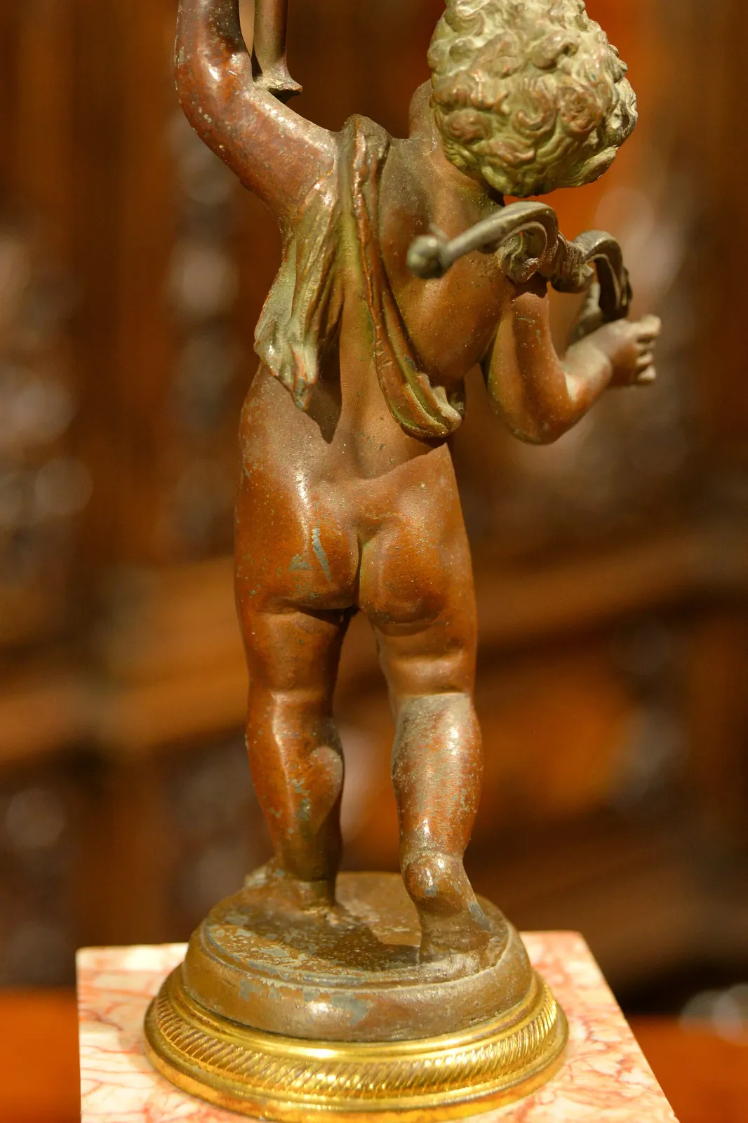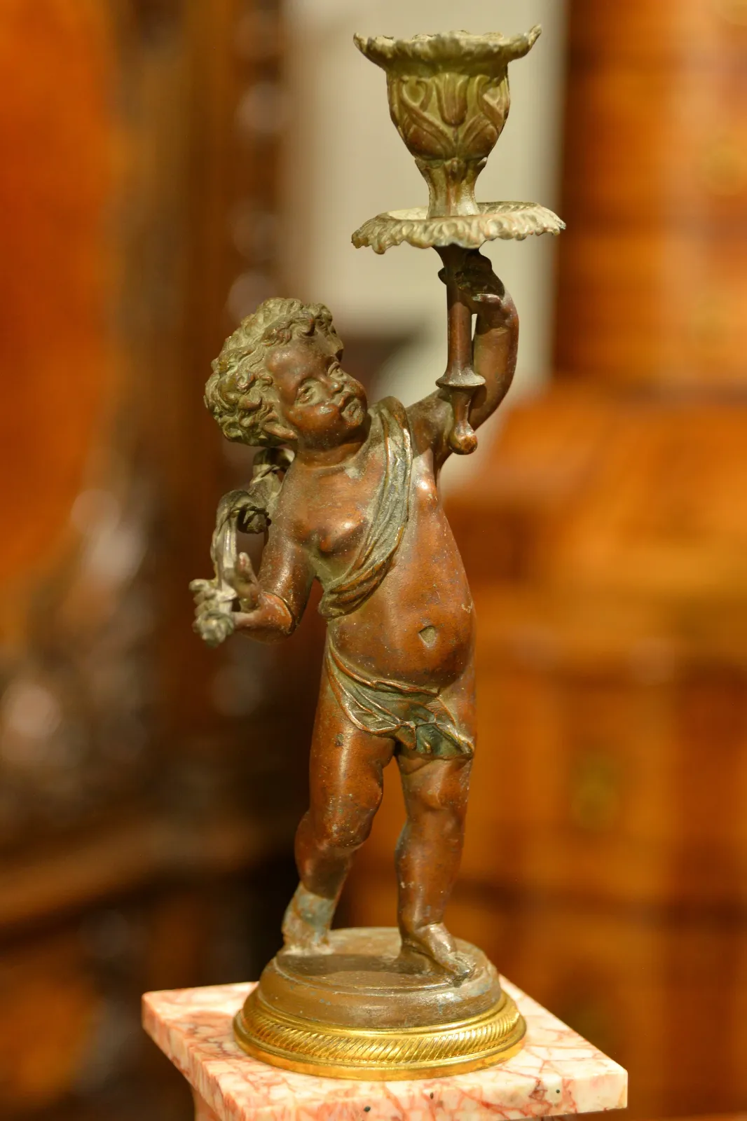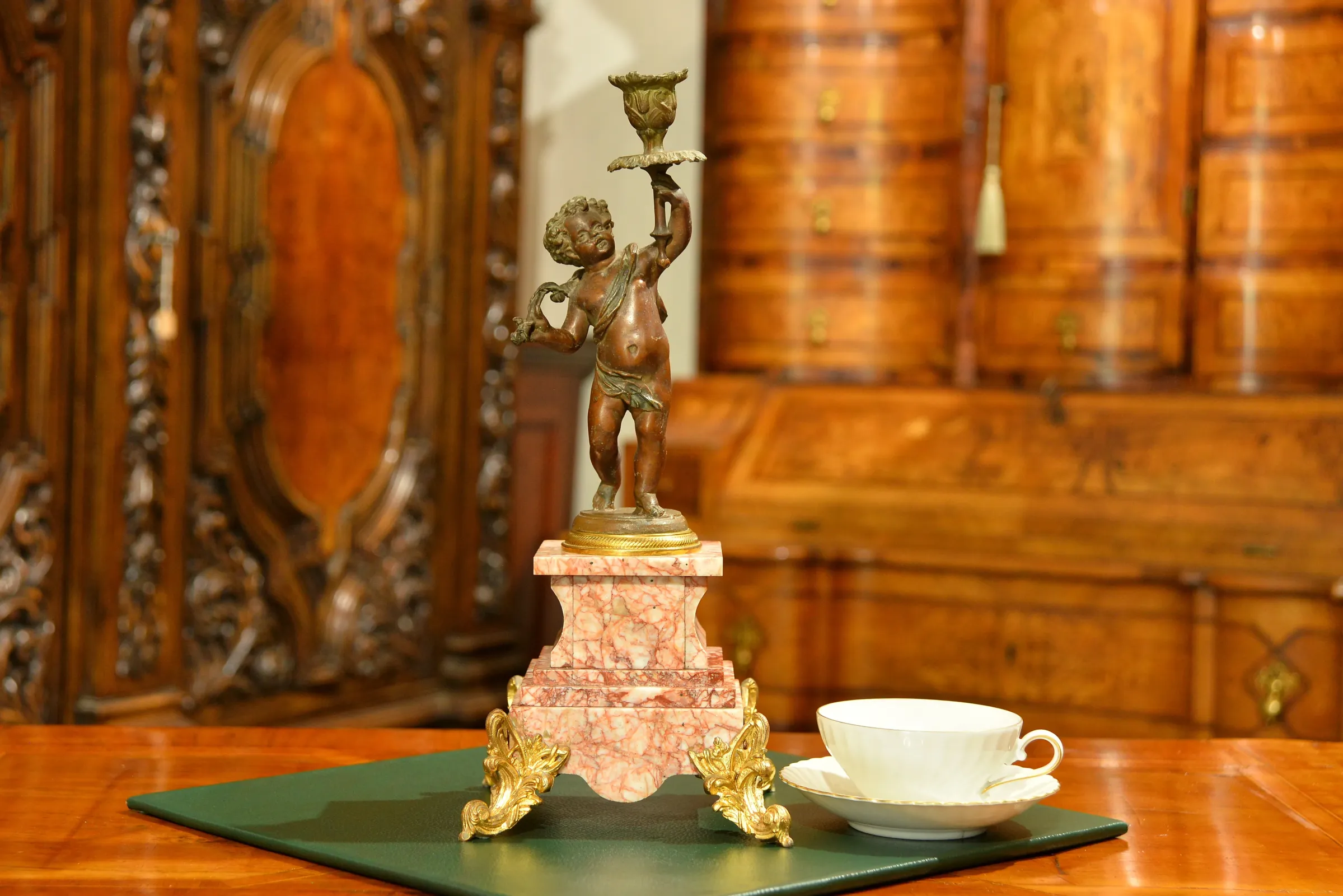 ŚWIECZNIK PUTTO NA MARMUROWEJ PODSTAWIE ok. 1870r
