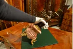 - świecznik zachowany w oryginalnym, dobrym stanie, widoczne są delikatne przetarcia brązowienia i złocenia