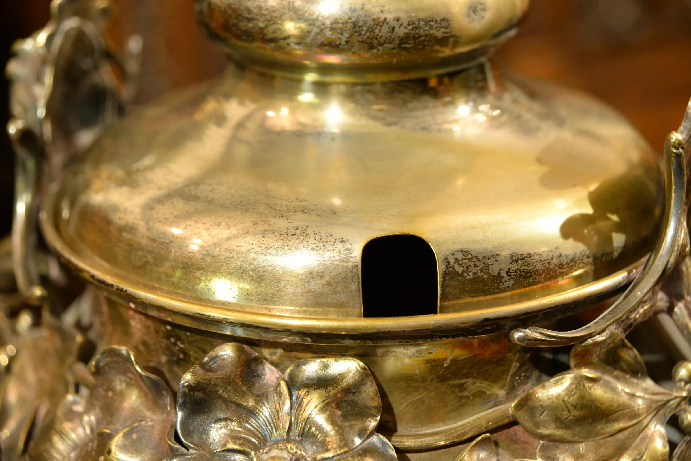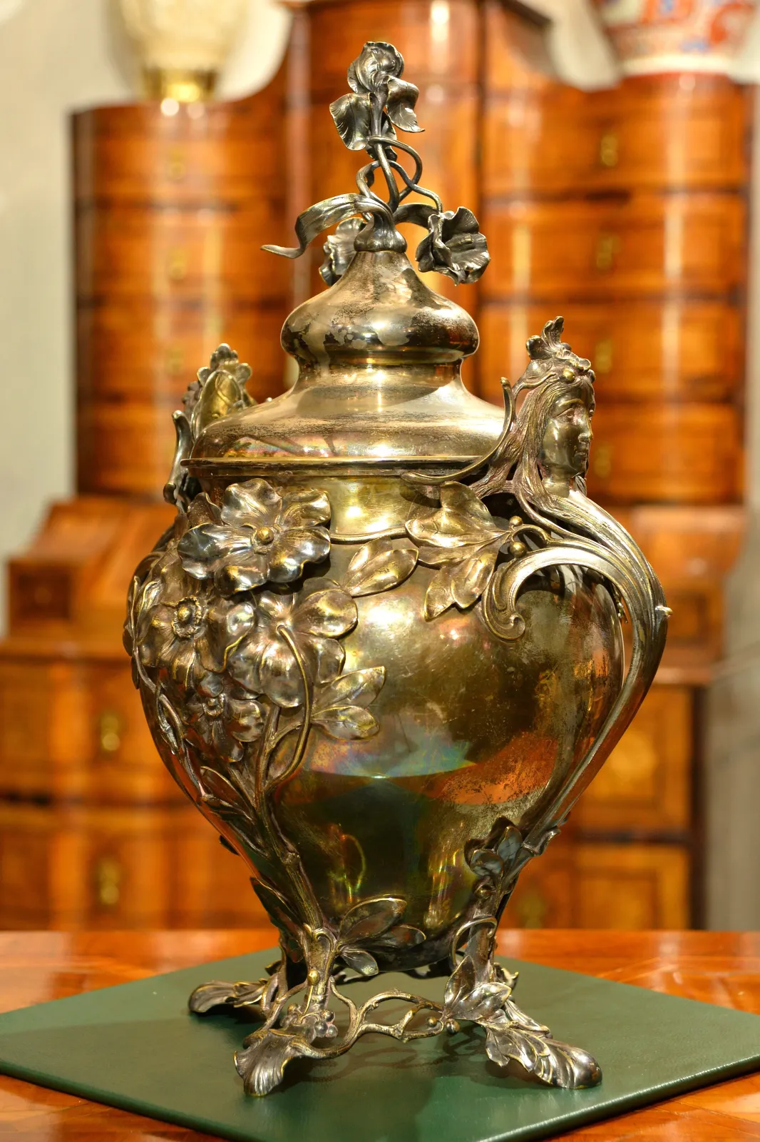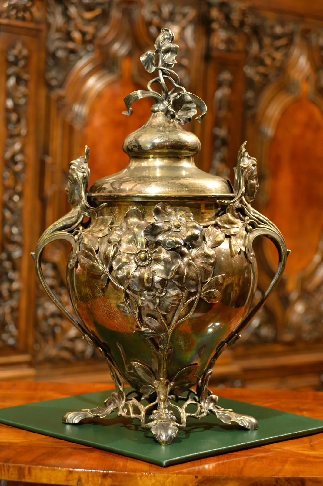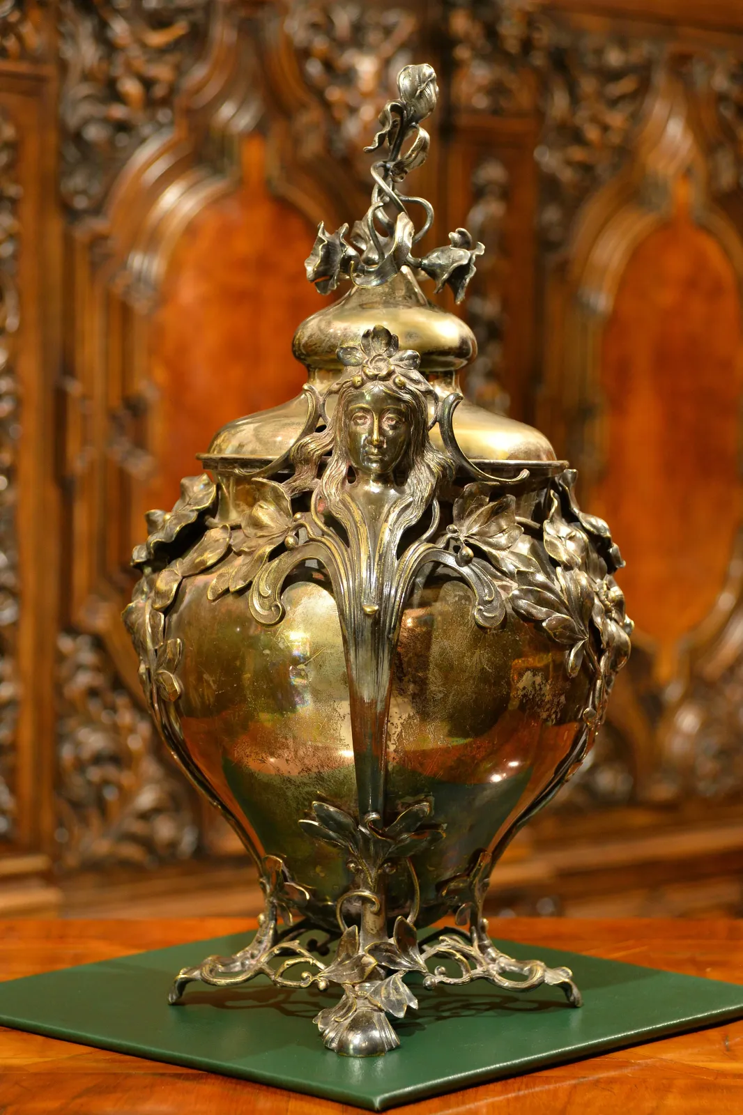 - unikatowa srebrzona bola / waza na poncz o przepięknej secesyjnej formie i ornamentyce