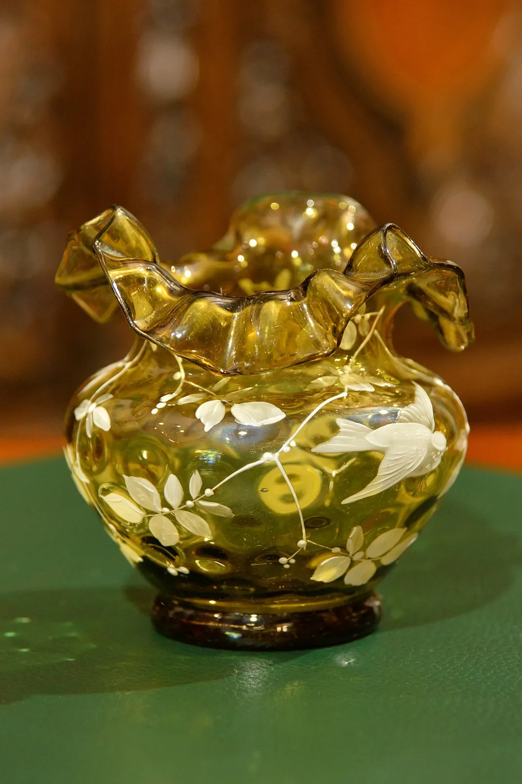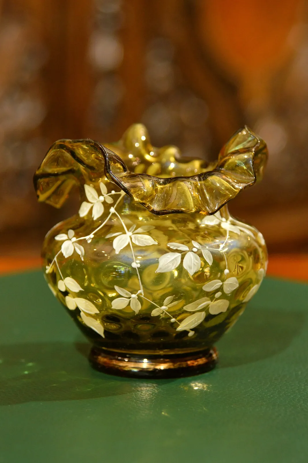 WAZONIK SZKLANY Z RĘCZNYMI MALUNKAMI ok. 1920r