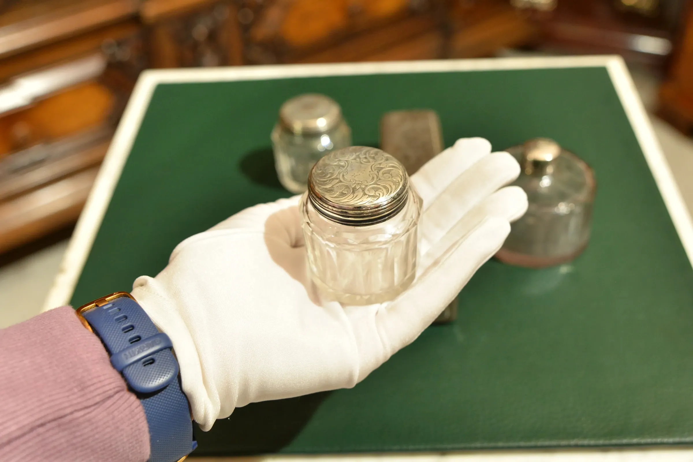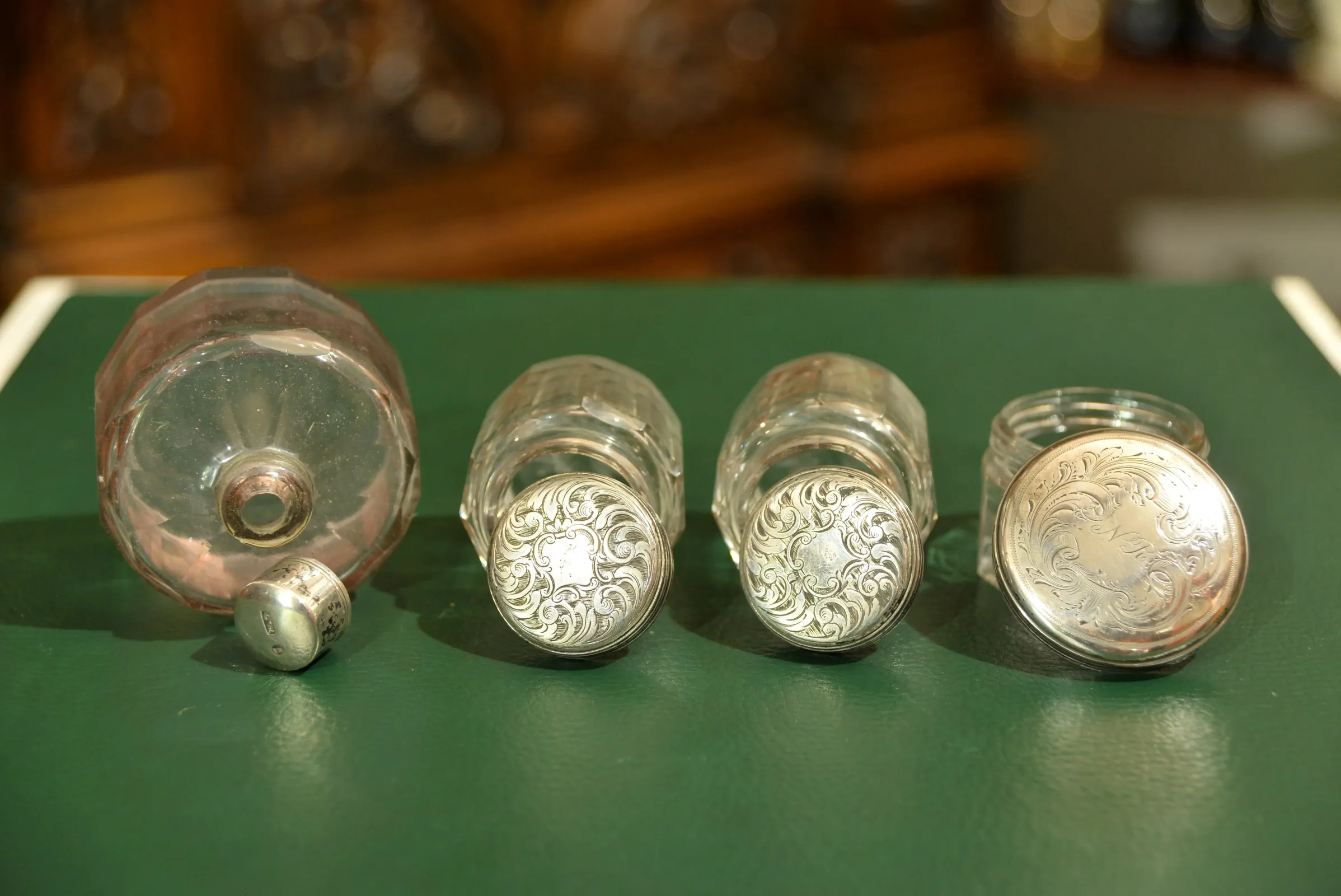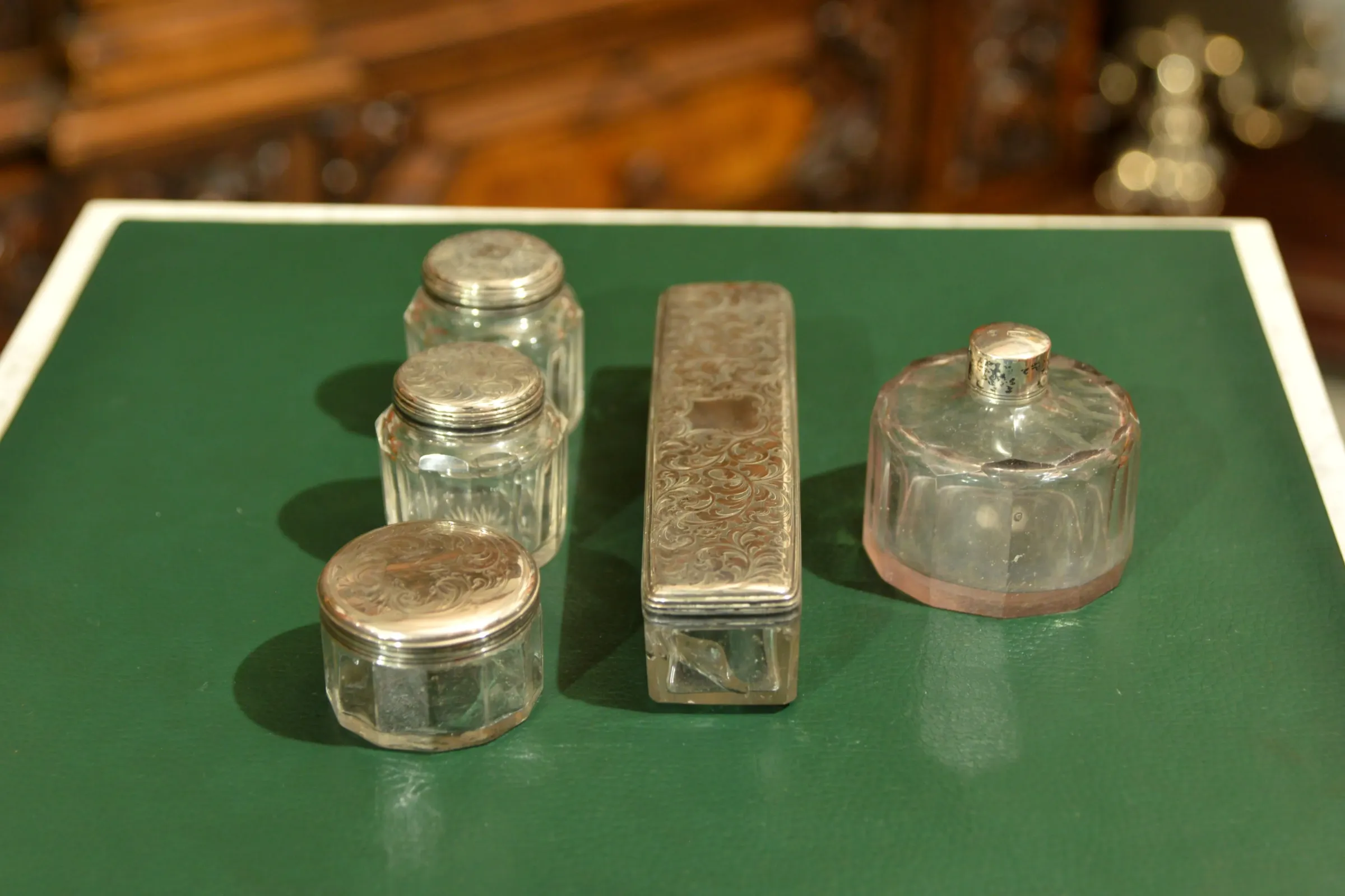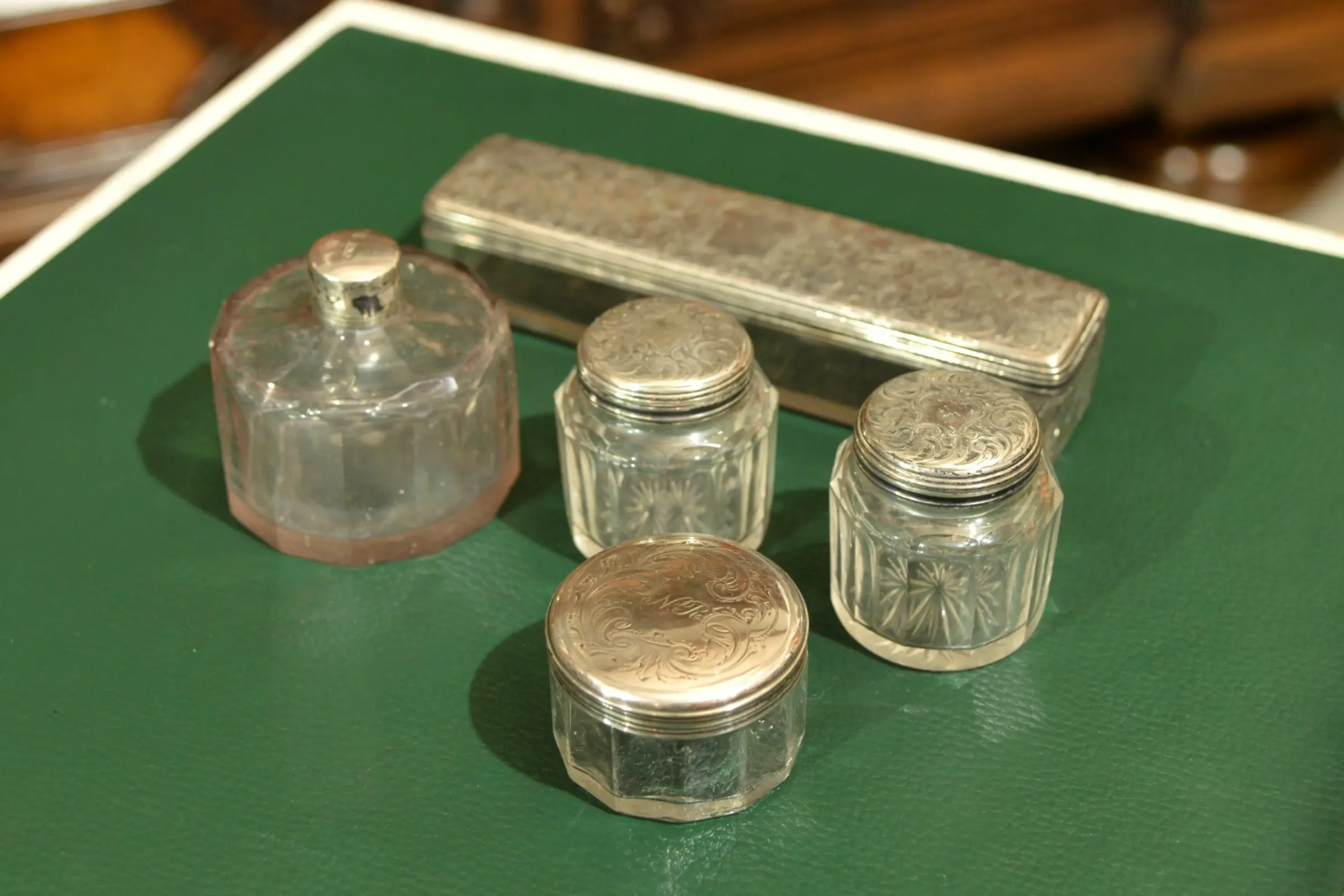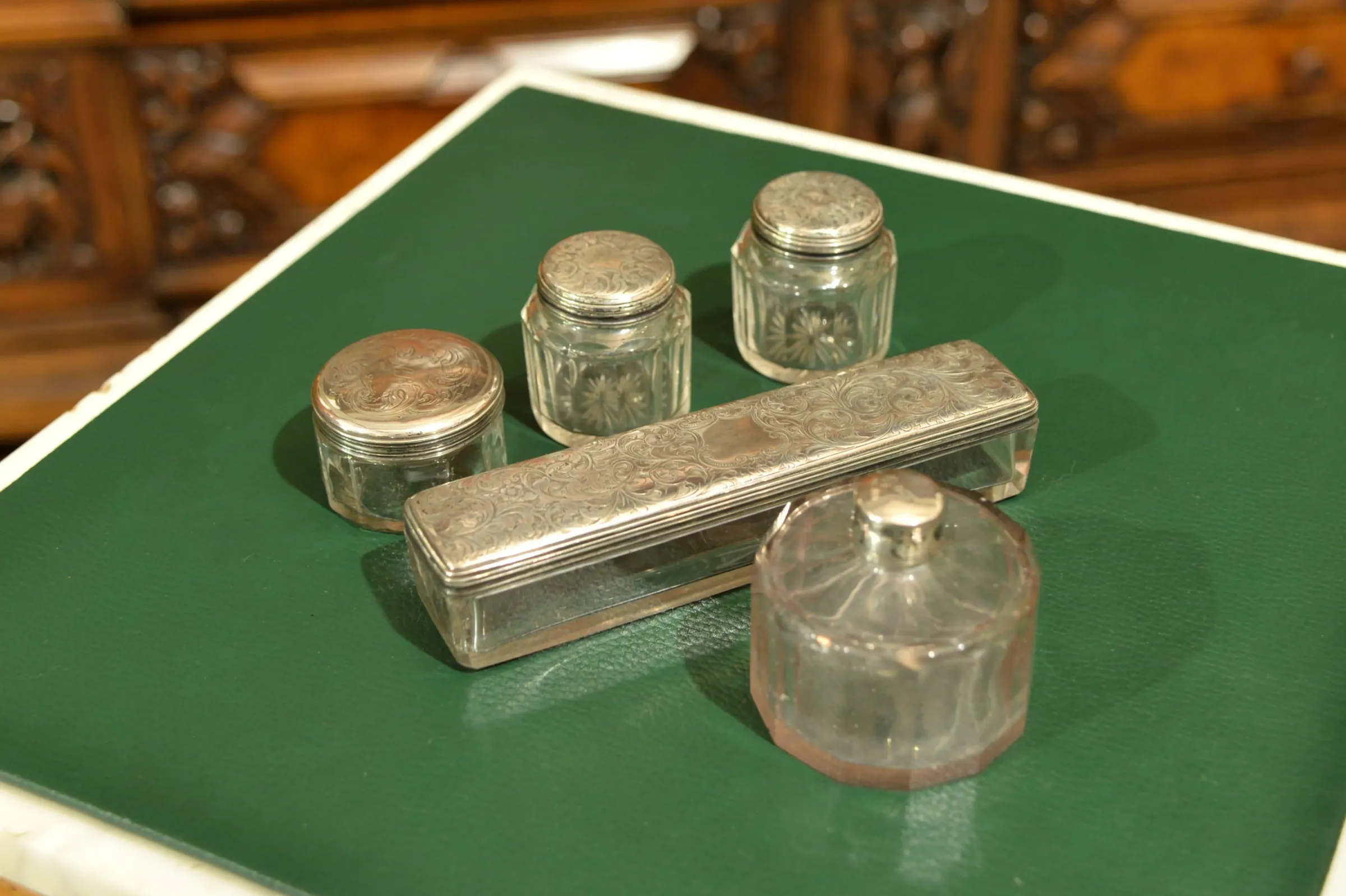 ZESTAW PUZDEREK POJEMNICZKÓW TOALETOWYCH SREBRO 1849r