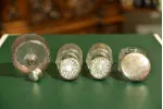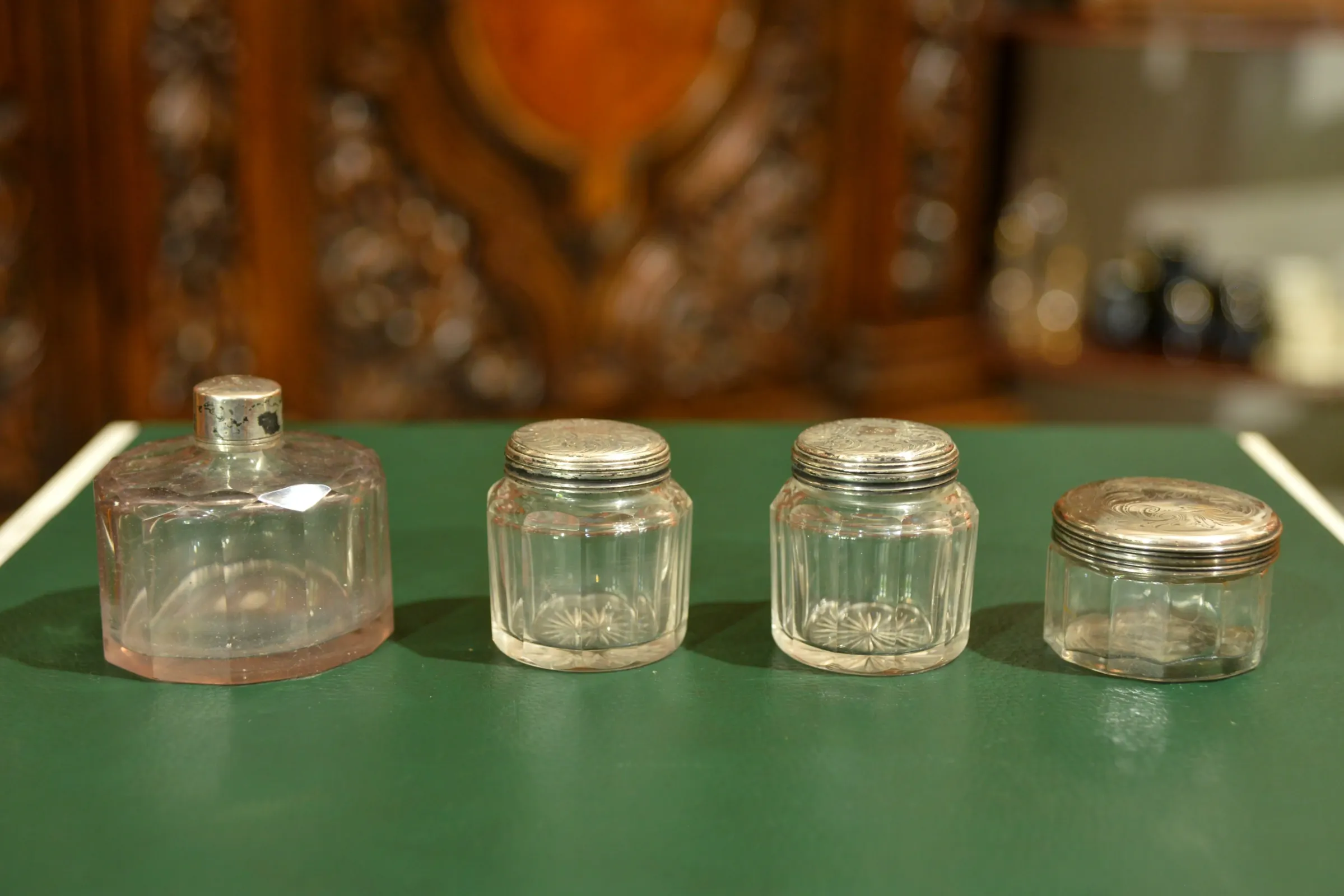 - szklane pojemniczki ze srebrnymi pokrywkami