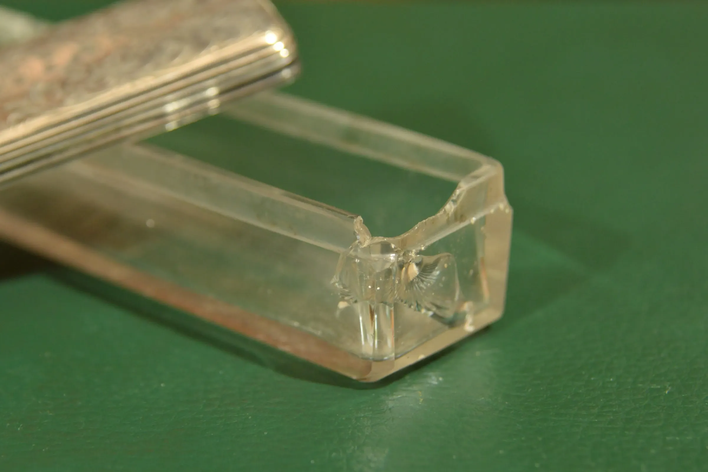 - stan zachowania - podłużny pojemnik ma uszkodzone w dwóch miejscach szkło - pokazane na zdjęciach